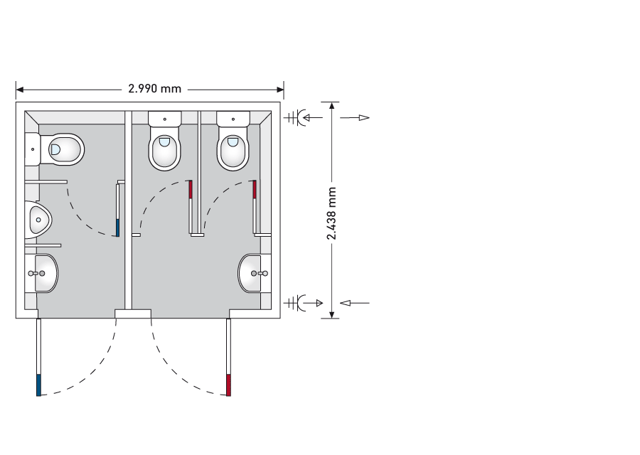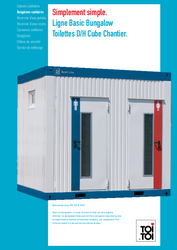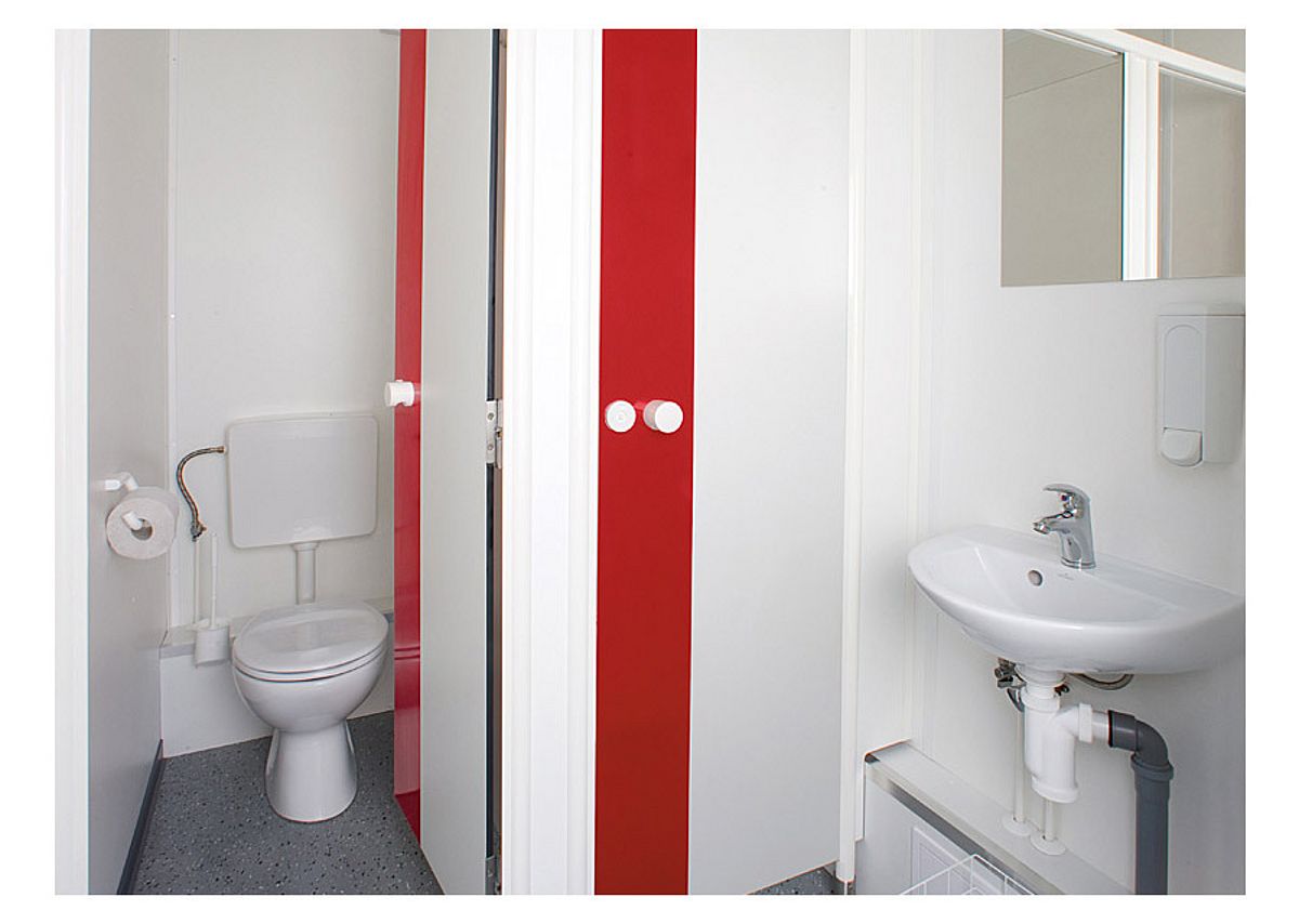 Ce bungalow ne demande que peu de place pour le placement mais donne quand même assez de place aux utilisateurs. Il n’ épargne pas que de la place mais aussi des coûts. D’ ailleurs le bungalow WC «Cube» Dames/Hommes est équipé avec tous ce qui est besoin pour une visite sanitaire assez agréable, des distributeurs de savon et serviettes jusqu’ aux chauffages pour les périodes froides. Cette modèle la plus petite de la série Basic Line est aussi très facile à maintenir.