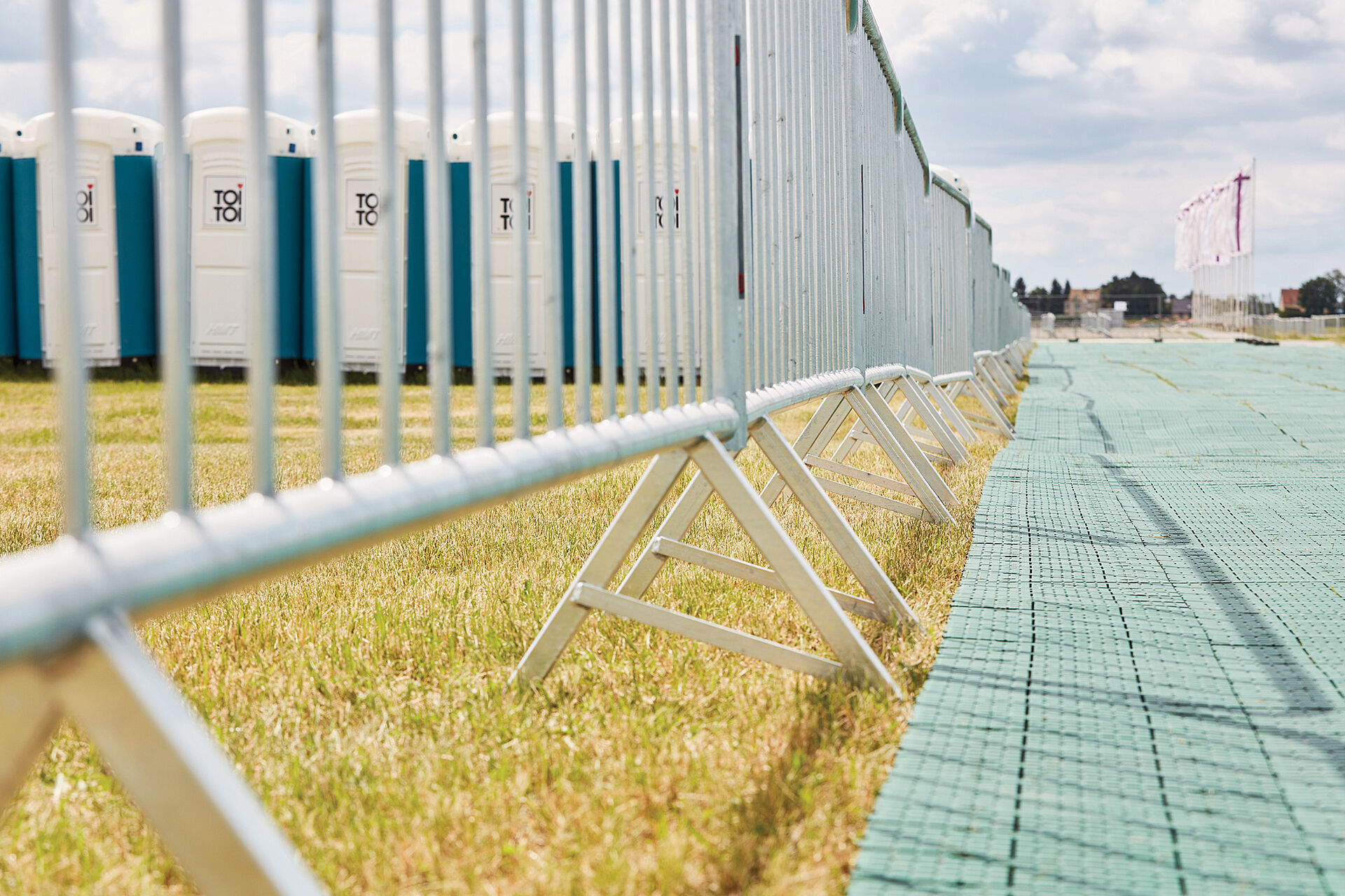 Vrachtwagens het evenemententerrein alleen op mogen rijden via aangewezen routes? Het terrein moet beveiligd worden? Geen probleem voor onze project managers. TOI TOI & DIXI levert u de geschikte uitrusting, bijvoorbeeld weggeleidingssystemen, in- en uitritpoorten, opritten, slagboomhekken, hekken met visuele beveiliging en vloerplaten die geschikt zijn voor vrachtwagens.