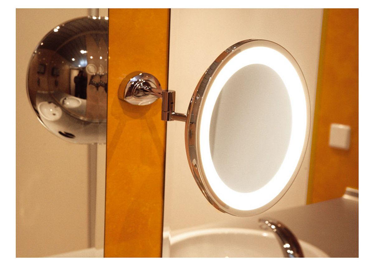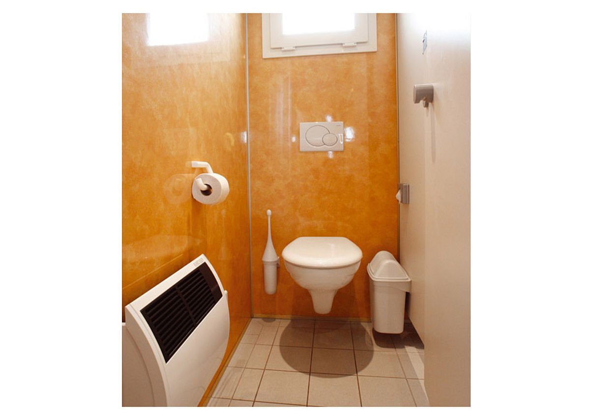 Perfect op elkaar afgestemde materialen, kleuren en vormen zullen indruk maken op uw gasten. Het ruime en stijlvolle interieur presenteert zich in tijdloze elegantie: gemarmerde muren, tegelvloer, hoogwaardige was- en make-upfaciliteiten. Het verlichtingsconcept met in het plafond geïntegreerde halogeenlampen dompelt de ruimte onder in een sfeervolle ambiance. Talrijke andere discrete accessoires onderstrepen de exclusieve ambiance.