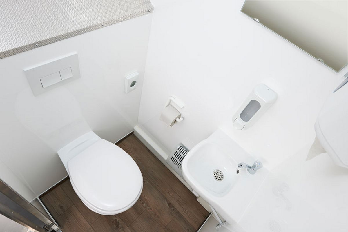 De meer dan complete uitrusting, zowel in het dames- als het herencompartiment, maakt deze kleine toilettrailer echt groot. Daarnaast is de trailer universeel inzetbaar en in alle weersomstandigheden: dankzij de vorstvrije inwendige inbouwbuizen, die ook een aantrekkelijk gevoel van ruimte geven. De trailer is er voor elke gelegenheid: met het oog op de hoogwaardige oppervlakken en sanitaire com