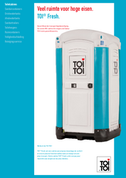 De eerste WC cabine die volgens de Duitse TÜV norm gecertificeerd is. TOI® Fresh is een mobiele toiletcabine met meer comfort, meer gebruiksgemak en een beter design. Wie hogere eisen stelt aan toiletten, maakt met onze TOI® Fresh beslist de juiste keuze.