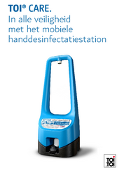 TOI® CARE - de hygiënische allrounder. Bent u op zoek naar een praktische, flexibele oplossing voor de verhoogde hygiëne-eisen die gelden op bouwplaatsen en op vele andere plaatsen? Met TOI® CARE heeft u een veilige oplossing. De mobiele handdesinfectieautomaat wordt bediend met de voetpomp, dus geen contact met de handen. Met zijn compacte afmetingen en robuuste ontwerp is hij gemakkelijk te vervoeren en maakt hij een snelle en veilige handdesinfectie mogelijk - altijd precies daar waar het nodig is.